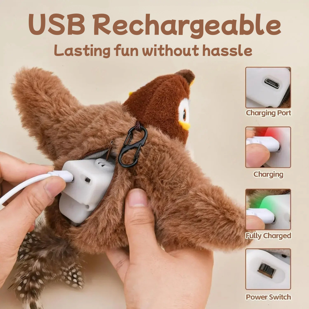 Turn your cat’s playtime into an interactive adventure with Flappy™ — the toy that chirps, flaps, and drives every feline wild! Infused with natural catnip, realistic bird sounds, and motion-activated flapping wings, it mimics the thrill of hunting in the wild. It’s also fully washable and easy to take apart, so you can keep it fresh and clean. Watch your cat jump, pounce, and chase with joy!